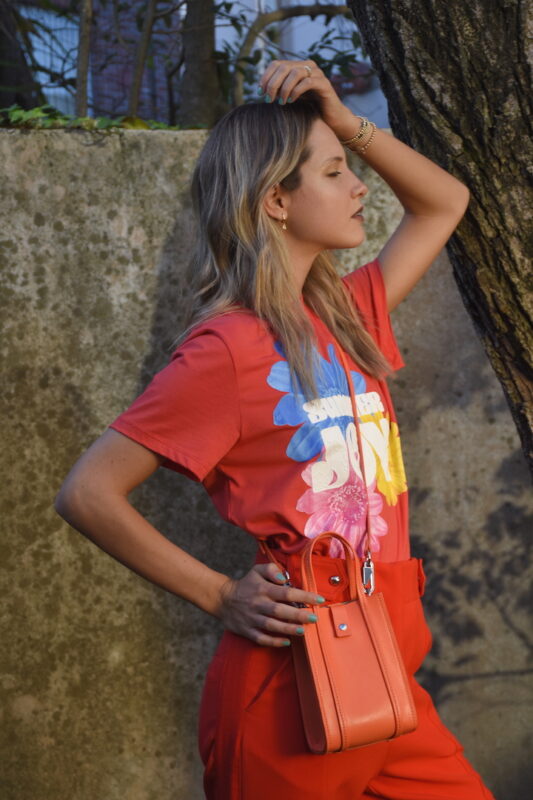 SHOP NOW: Remera joy y bolso negro, Jazmin Chebar, MAGMA