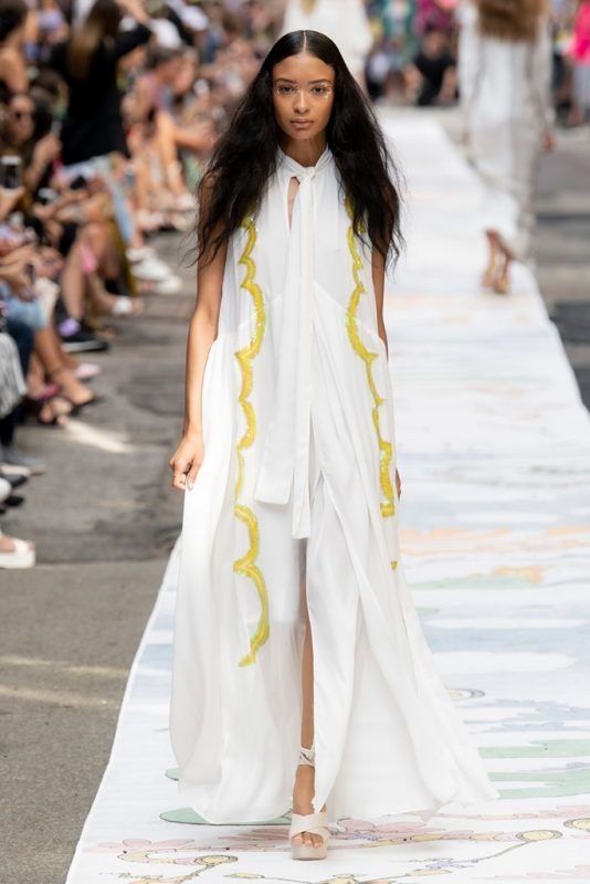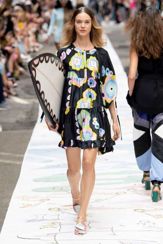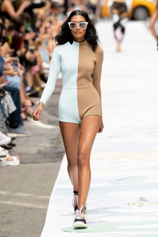 Cynthia Rowley se destaca por su espìritu lúdico, fresco y sofisticado a la vez. En su último desfile en New York Fashion Week, sorprendió con contrastes de estampas y estilos. Piezas de fondo negro; monos, vestidos, pantalones y bikinis y en contraposición looks en tonos pastel y/o en blanco acompañados en varios casos por gafas de gran tamaño.