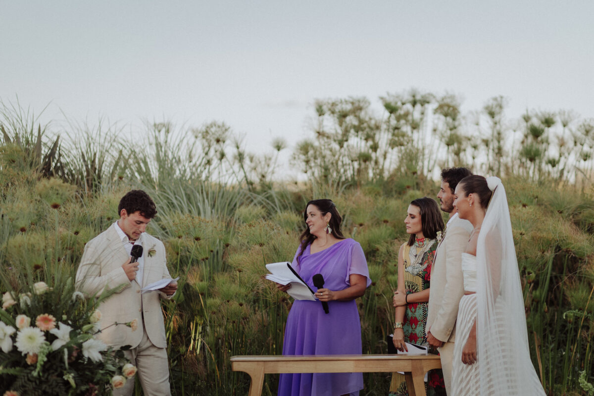 La ceremonia, guiada por amigas y familiares, tuvo un tono profundamente emocional. Las palabras dichas —cercanas, honestas— marcaron uno de los momentos más intensos de la celebración, en un entorno donde la naturaleza y el afecto se entrelazaron sin artificio.