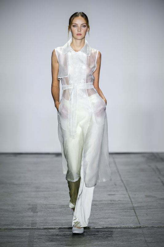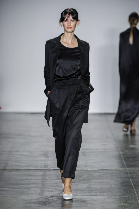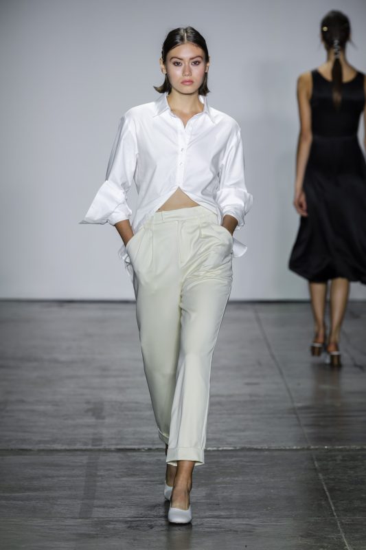 Ella es canadiense y de ingeniera electrónica se convirtió en diseñadora de moda creando una lujosa línea de indumentaria. Limpia, despojada y “tímeles” con acento en los textiles y  en la silueta.