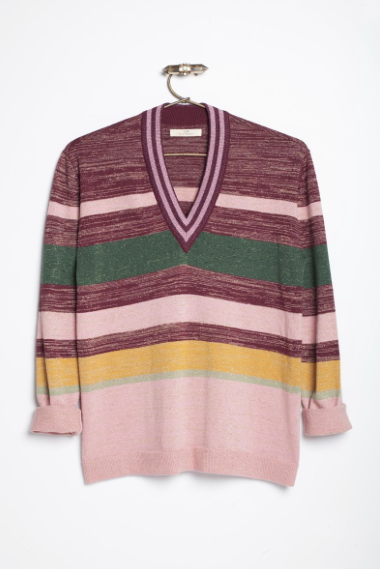El segundo tiene con un cuello escotado y deportivo y, esen lurex, lo que le da ese toque femenino que nunca falta en las prendas de Rapsodia.