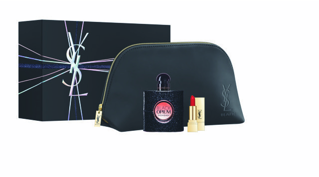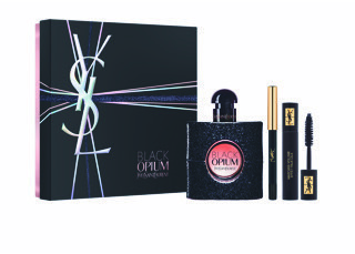 Black Opium con delineador y máscara de pestañas YSL o en la versión de necessaire con labial YSL.
